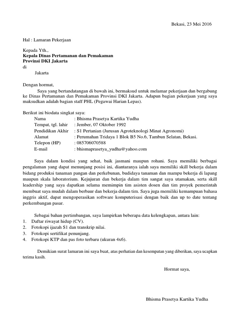 Dengan adanya surat lamaran kerja, pihak penyedia lowongan pekerjaan dapat menentukan layak atau tidaknya seseorang untuk bekerja di tempat tersebut. Contoh surat lamaran kerja dan 5 tips ciamik untuk membuatnya. Sekian penjelasan yang bisa admin berikan mengenai contoh surat lamaran kerja di kantor pdam. Info lowongan pekerjaan tak hanya tersedia di media cetak saja, tapi juga melalui internet. Fungsi pentingnya membuat surat lamaran kerja pt kai.
